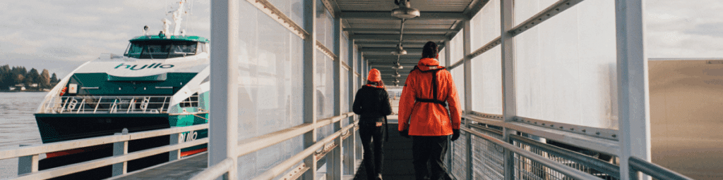 Practical details? They’ve got those covered too. Think six private, non-gendered restrooms (yes, including an accessible one with a change table), plenty of space for luggage and gear, and even the option to bring along your bike, golf clubs, skis, or surfboard. Honestly. Your adventures don’t stop at the dock with Hullo. Vancouver’s terminal is minutes from SkyTrain, bus routes, and rideshares, while Nanaimo’s terminal offers 350+ parking stalls and a free shuttle that whisks you right into downtown. Translation: no stress, no lineups, no “did I miss my sailing?” panic. Just easy, breezy, downtown-to-downtown travel the way it should be.